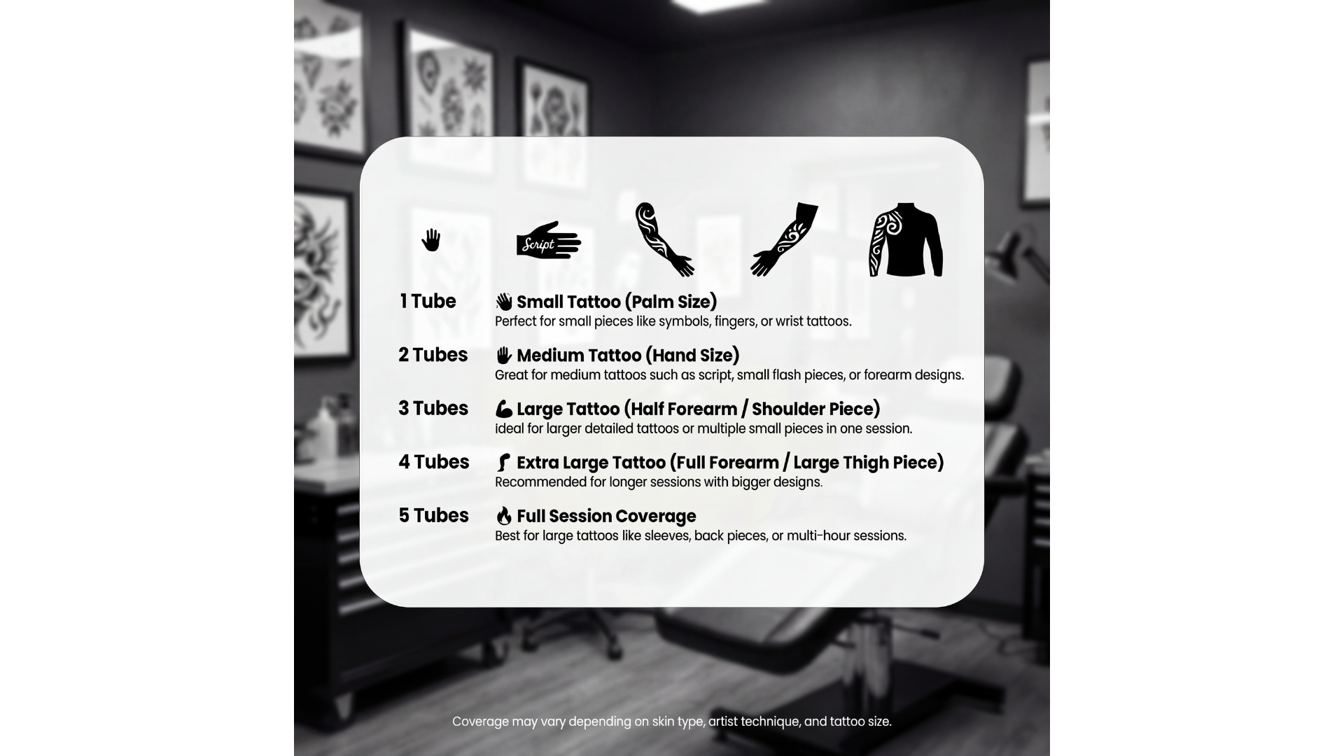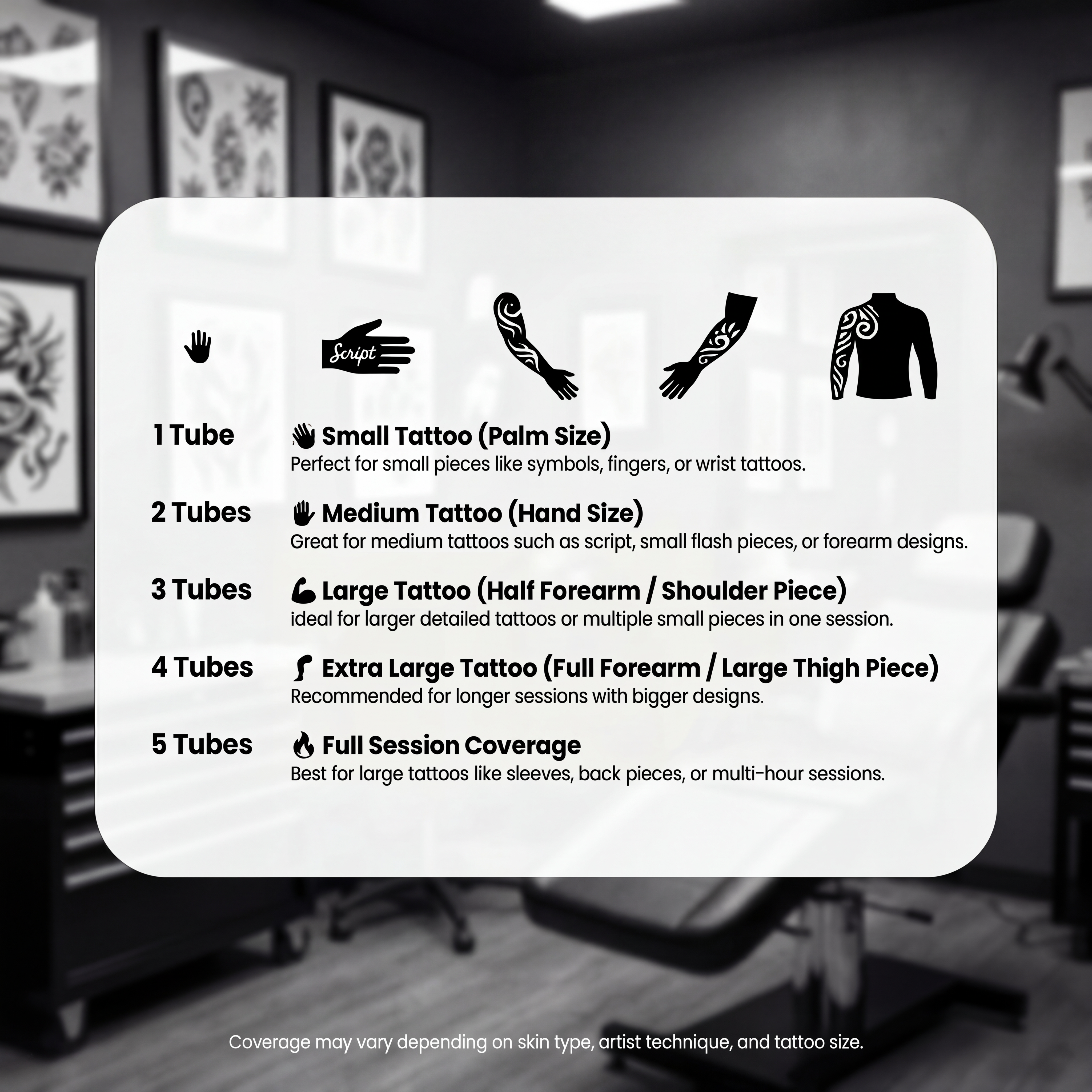 Coverage guide based on average tattoo sizes.